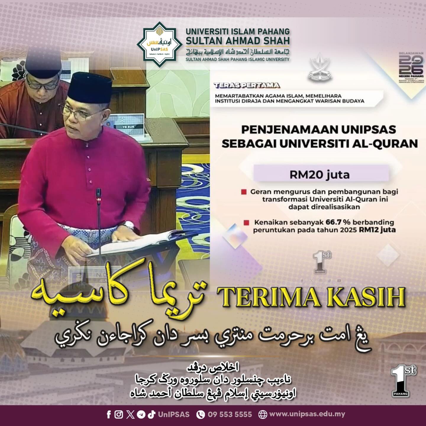 Beliau turut berkongsi bahawa UnIPSAS akan menghantar pelajar lepasan diploma ke Abu Dhabi pada tahun 2026 bagi mengikuti pengajian Ijazah Sarjana Muda di Mohamed Bin Zayed University for Humanities (MBZUH), dengan tajaan penuh daripada kerajaan UAE.