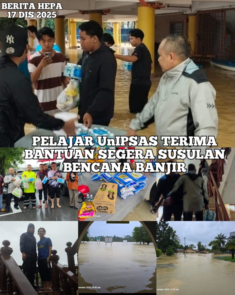 Seluruh warga UnIPSAS merakamkan setinggi-tinggi penghargaan dan ucapan terima kasih kepada semua pihak yang terlibat serta mendoakan agar bencana banjir ini segera surut, dan seluruh warga kampus sentiasa berada di bawah lindungan dan rahmat Allah SWT.