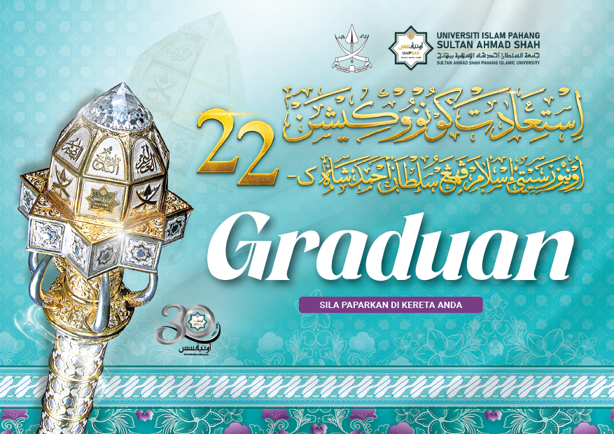 Didoakan semoga saudara/saudari sentiasa sihat walafiat, selamat serta dilindungi Allah SWT hendaknya. Pihak UnIPSAS merakamkan ucapan tahniah dan syabas di atas kejayaan saudara/i menamatkan pengajian di Universiti Islam Pahang Sultan Ahmad Shah (UnIPSAS) serta layak dianugerahkan diploma/ijazah sempena Istiadat Konvokesyen Ke-22 UnIPSAS.